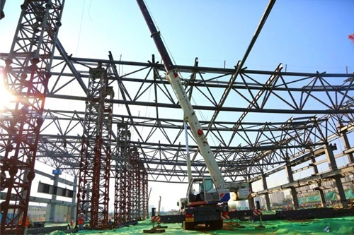 位于項(xiàng)目最南側(cè),最先開工的五號(hào)展館主體鋼結(jié)構(gòu)已基本完成。