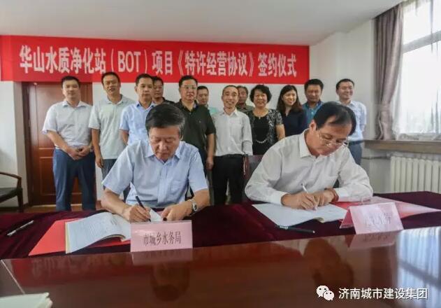 8月30日上午,濟(jì)南市華山水質(zhì)凈化站(BOT)項(xiàng)目《特許經(jīng)營協(xié)議》簽約儀式在濟(jì)南城市建設(shè)集團(tuán)舉行。濟(jì)南市城鄉(xiāng)水務(wù)局與中國光大水務(wù)有限公司,就華山水質(zhì)凈化站項(xiàng)目的建設(shè)運(yùn)營簽訂正式協(xié)議。濟(jì)南城市建設(shè)集團(tuán)作為該項(xiàng)目實(shí)施主體,先期開展完成了規(guī)劃選址、土地預(yù)審、項(xiàng)目立項(xiàng)等工作,組織進(jìn)行了勘察和工程設(shè)計(jì)。通過公開招標(biāo),7月初確定中國光大水務(wù)有限公司為該項(xiàng)目建設(shè)投資、運(yùn)營單位。
