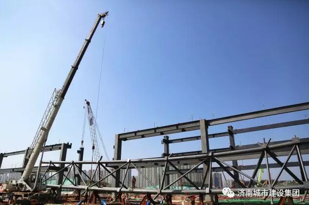 9月8日上午,濟南西部會展中心項目的第一榀(pǐn,屋架量詞)屋面鋼結(jié)構(gòu)桁架吊裝完成,五號展館的鋼結(jié)構(gòu)主體雛形初現(xiàn),濟南西部會展中心的建設(shè)步伐又推進了扎實一步。