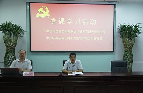 為進一步學習貫徹落實黨的十九大精神,深入領(lǐng)會山東省新舊動能轉(zhuǎn)換重大工程會議要求,激發(fā)廣大黨員干部新時代新?lián)斝伦鳛椋?018年5月25日下午,濟南金諾公路工程監(jiān)理有限公司黨支部、濟南金衢公路勘察設(shè)計研究有限公司黨支部組織全體黨員、中層及以上干部、積極分子五十余人在金衢公司第一會議室進行黨課學習。濟南金諾公司黨支部書記、董事長兼總經(jīng)理馮子強,濟南金衢公司黨支部書記、董事長兼總經(jīng)理張建等領(lǐng)導出席學習活動,會議由濟南金衢公司張建書記主持。