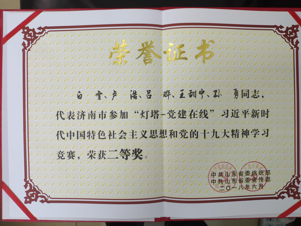 6月26日下午,全省“燈塔-黨建在線”黨的十九大精神學(xué)習競賽現(xiàn)場總決賽在濟南山東電視臺落下帷幕。來自濟南城市建設(shè)集團市政資產(chǎn)運營公司的呂曄、孫勇,市公安局的王甜寧,市公交總公司的白雪,大智教育集團的盧浩等五名同志代表濟南市參加比賽,榮獲二等獎。