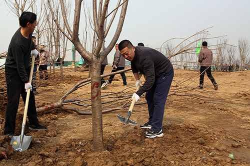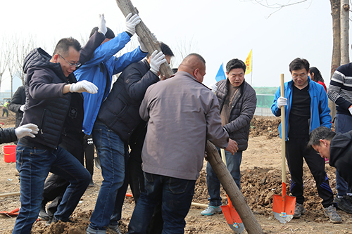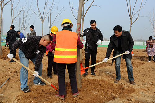 在活動(dòng)現(xiàn)場(chǎng),參加植樹(shù)的干部職工個(gè)個(gè)熱情高漲、干勁十足,他們幾個(gè)人一組,扶直樹(shù)苗、揮鍬培土、踩實(shí)壓緊,大家配合得很默契,整個(gè)勞動(dòng)場(chǎng)面繁忙而有序。經(jīng)過(guò)一上午的緊張勞動(dòng),一排排整齊的苗木為初春增添了生機(jī)。