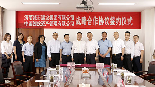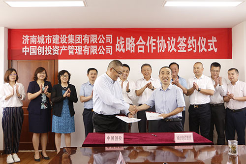 近日,濟(jì)南城市建設(shè)集團(tuán)有限公司(以下簡(jiǎn)稱“集團(tuán)”)與中國(guó)創(chuàng)投資產(chǎn)管理有限公司(以下簡(jiǎn)稱“中國(guó)創(chuàng)投”)舉行戰(zhàn)略合作協(xié)議簽約儀式。中國(guó)創(chuàng)投董事長(zhǎng)王大明,總裁徐浩,副總裁王大永,城市建設(shè)集團(tuán)黨委書(shū)記、董事長(zhǎng)李國(guó)祥,黨委副書(shū)記、總經(jīng)理李培杰,總會(huì)計(jì)師范天云等相關(guān)負(fù)責(zé)同志出席了簽約儀式。濟(jì)南市財(cái)政局副局長(zhǎng)王宏偉受邀參加活動(dòng)。