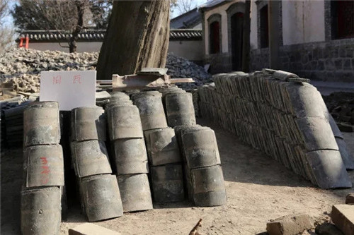 目前,所有古建的勘查檢修工作已經(jīng)完成,年久失修的房頂苫背、望板等已全被撤下,色澤與功能都已陳舊建筑油漆也被逐層敲除,臨時(shí)撤下的古磚古瓦、飛檐檁條等都被整齊編號(hào)入庫,以作后用。