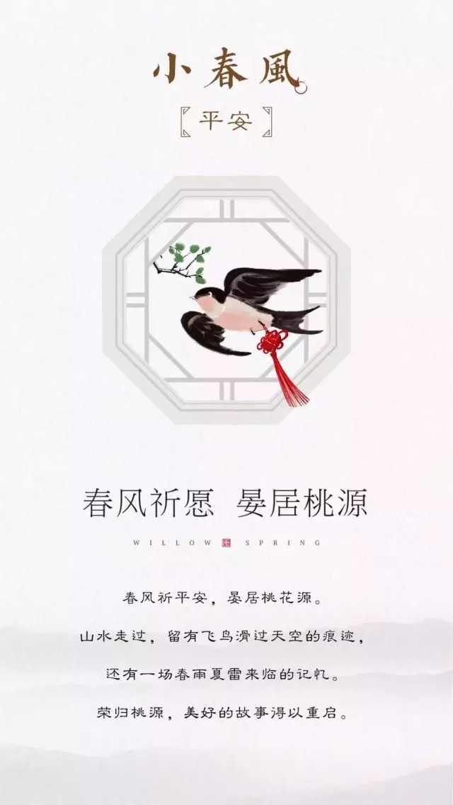 小春風,以詩意的水墨風,將象征著生機、活力、美好與希望的春天收藏在這一座“都市桃花源”之中,寓意著春天的種種美好、春天般的幸福生活能夠常駐于此。