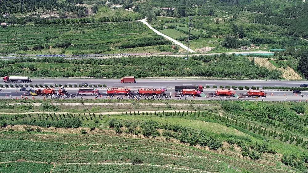 由于工藝和設(shè)備的限制,原來高速公路養(yǎng)護(hù)施工時(shí)必須全封閉交通。而使用就地?zé)嵩偕夹g(shù)施工時(shí),各設(shè)備前后相連、連續(xù)動(dòng)態(tài)施工,只占用一個(gè)車道,不用封閉其他車道交通,大大提高了施工期間高速公路的通行能力。