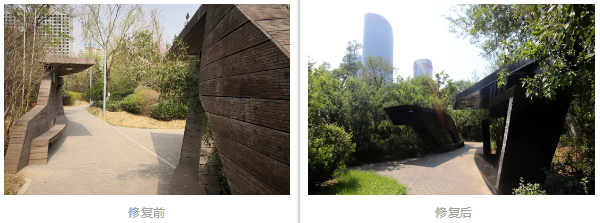 本次工程主要包括高速廣場(chǎng)及三館廣場(chǎng)重竹地板維修、木棧道路修復(fù)、局部河道清淤三項(xiàng)主要內(nèi)容,其余還有修補(bǔ)滲水方磚地面、廣場(chǎng)金屬欄桿刷漆、廣場(chǎng)區(qū)域休息座凳整修、廣場(chǎng)區(qū)域木質(zhì)墻面固定刷漆、跨河石橋欄板地面局部飾面板缺失等零星工程,均為在原貌基礎(chǔ)上進(jìn)行修復(fù)。工程完工后,集團(tuán)下一步將委托專門的維護(hù)單位對(duì)臘山河進(jìn)行常規(guī)維護(hù),讓臘山河水常清、岸常綠。