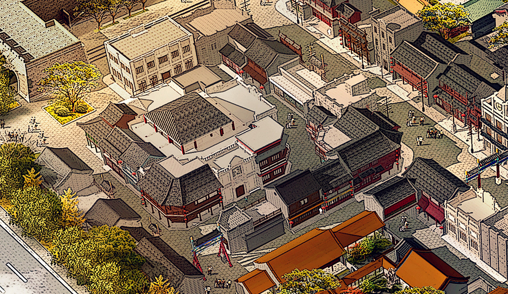 目前,項(xiàng)目現(xiàn)場(chǎng)與規(guī)劃效果圖的“吻合度”已經(jīng)越來(lái)越高。占地面積最大、院落層次最復(fù)雜的“親王府”已現(xiàn)雛形,城隍廟、城門樓、各類民國(guó)建筑輪廓一目了然,不久的將來(lái),這些場(chǎng)景都將會(huì)出現(xiàn)在影視作品中。