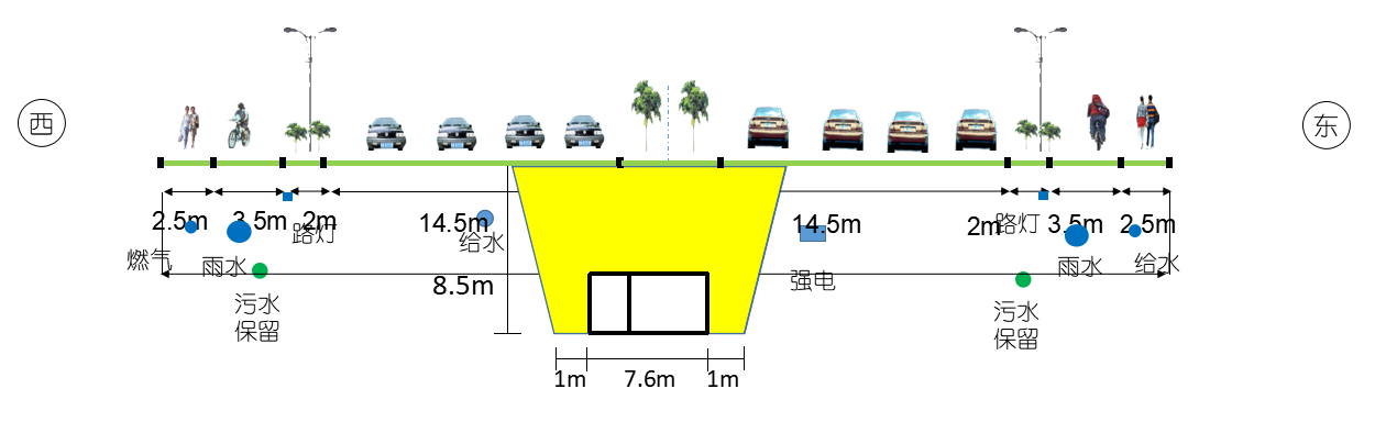 竣工后的鳳岐路地上擁有雙向八車道機(jī)動車道以及非機(jī)動車道和人行道,地下?lián)碛薪∪木C合管線,通行能力和通行質(zhì)量得到質(zhì)的提升。管線施工以綜合管廊為主線,兩側(cè)管線及慢行一體同步施工。