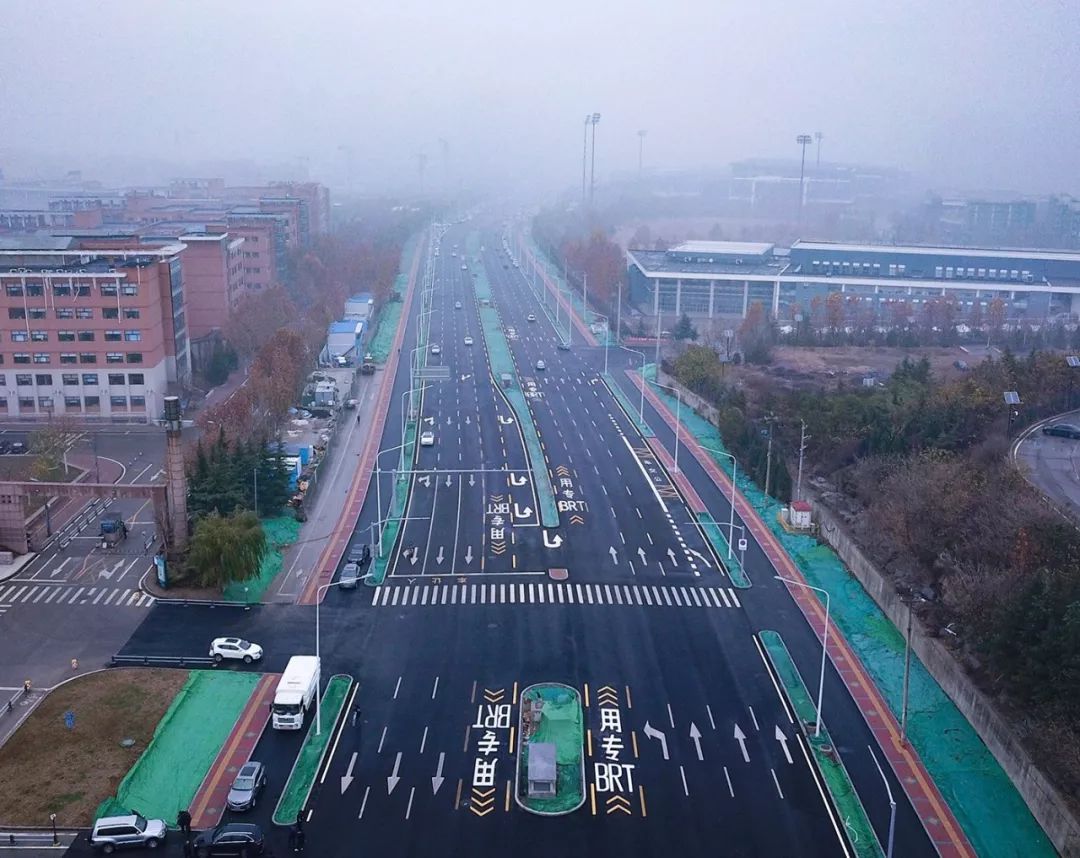 作為濟南市2018年要打通的28條瓶頸路之一,鳳鳴路12月2日正式建成通車,成為東部城區(qū)南北大通道之一,極大解決了東部出行問題。濟南城市建設(shè)集團所屬濟南金宇公路產(chǎn)業(yè)發(fā)展有限公司負責(zé)經(jīng)十路鳳鳴路路口至工業(yè)北路鳳鳴路路口路面標線施劃,采用安全系數(shù)強且環(huán)保的新型雙組份材料對該路段進行施工,讓生命更安全,讓濟南天更藍!