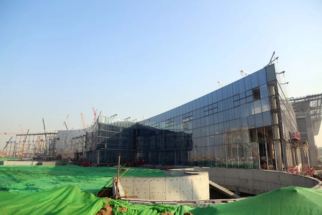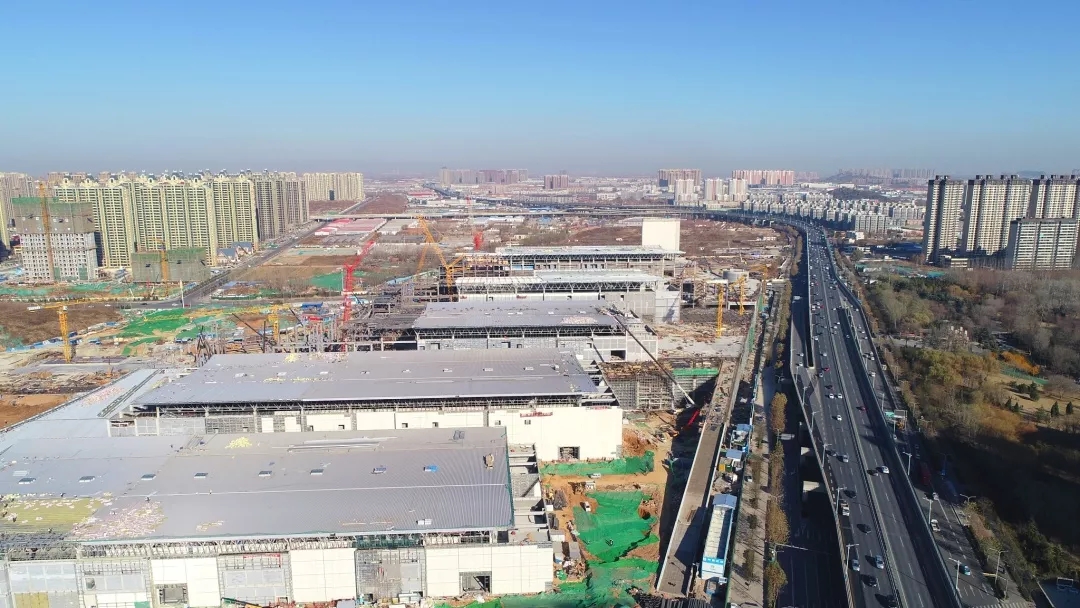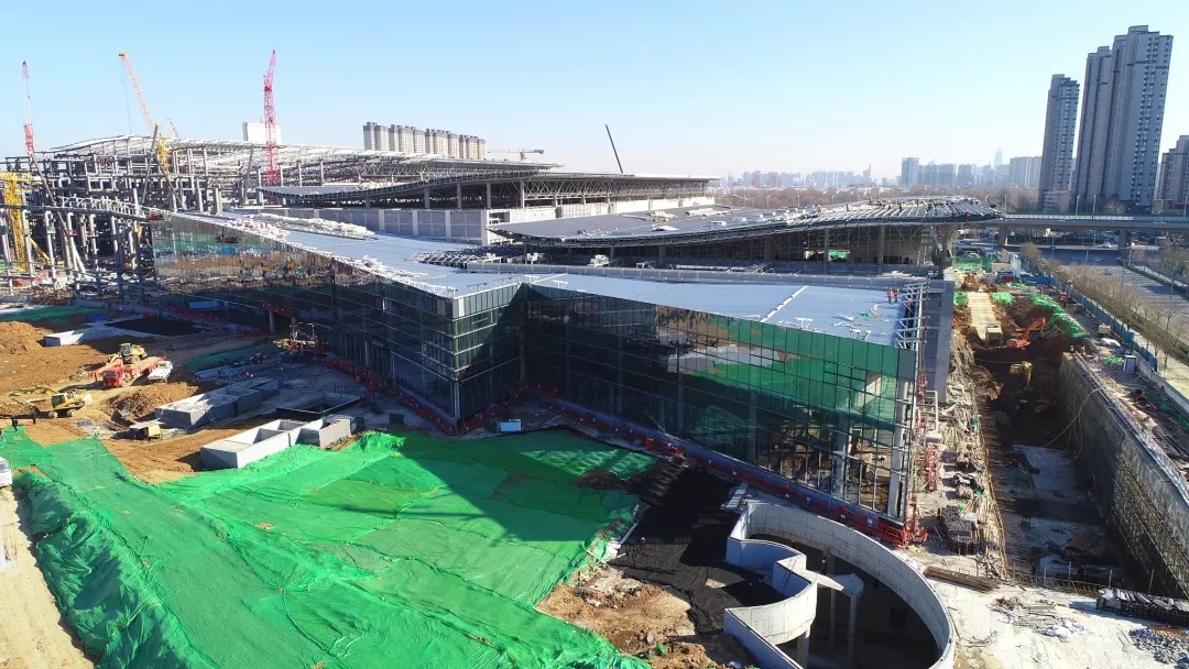 目前,展館區(qū)域已完成5個(gè)展館及4、5號(hào)館共享大廳、西輔房區(qū)域主體鋼結(jié)構(gòu)與二次結(jié)構(gòu)施工,正在進(jìn)行裝飾安裝工程。地下車庫(kù)已完成除軌道M1線預(yù)埋段區(qū)域主體結(jié)構(gòu)施工,正在進(jìn)行二次結(jié)構(gòu)、裝飾安裝、室外回填及剩余地下車庫(kù)主體結(jié)構(gòu)工程施工。