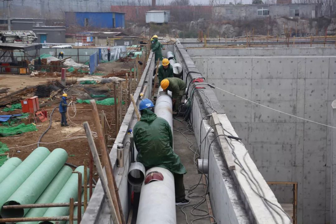 AAO反應(yīng)池是污水處理最重要的環(huán)節(jié),主要由厭氧池、缺氧池、好氧池等組成,優(yōu)化污水處理的工藝,是一種反應(yīng)器少、步驟少、效率高的污水處理生化反應(yīng)池系統(tǒng),同時(shí)利用內(nèi)循環(huán)反硝化技術(shù)對城市污水進(jìn)行脫氮除磷處理,可減少后續(xù)沉淀池藥劑使用。截止目前,已完成主體結(jié)構(gòu)施工,正在進(jìn)行反應(yīng)池的管道焊接、安裝工作。