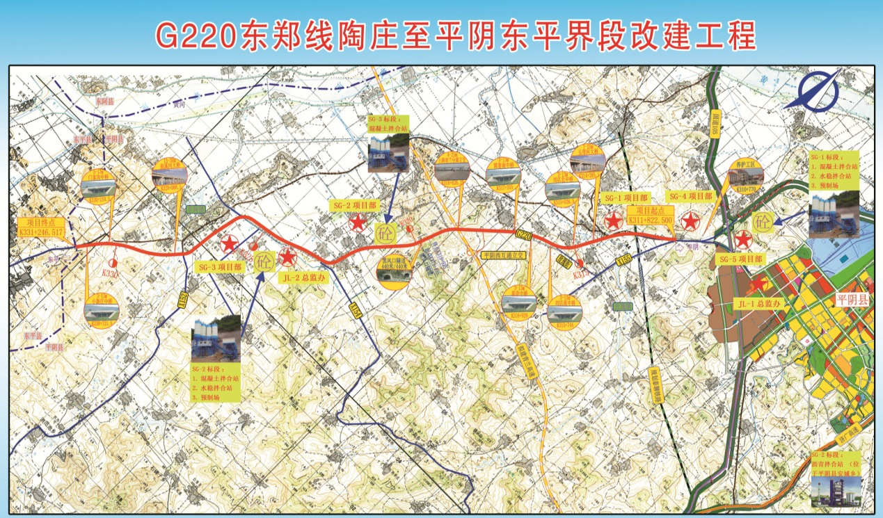 G220東鄭線陶莊至平陰東平界段改建工程項目位于濟南市平陰縣境內(nèi),路線全長19.424km,其中利用原路改建段16.635公里,新建段2.789公里。全線設(shè)大橋2座、中橋6座、小橋3座、涵洞53道、隧道440米/1座、分離立交1座,新建養(yǎng)護工區(qū)1處。全線采用雙向四車道一級公路標(biāo)準(zhǔn),設(shè)計速度80公里/小時,路基寬度一般路段為24.5米;東阿鎮(zhèn)路段路基寬37米,設(shè)置非機動車道;隧道進出口分離路基路段路基寬12.25米,批準(zhǔn)概算6.54億元,計劃總工期579天。