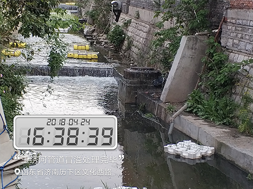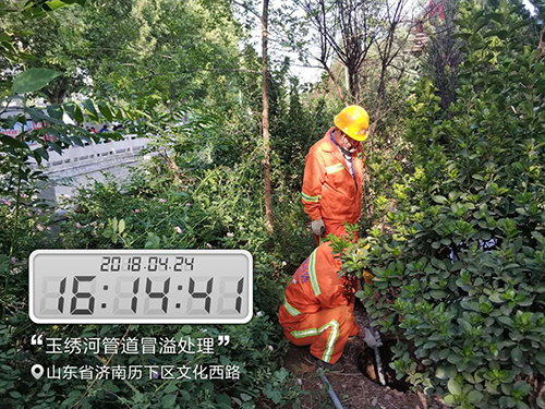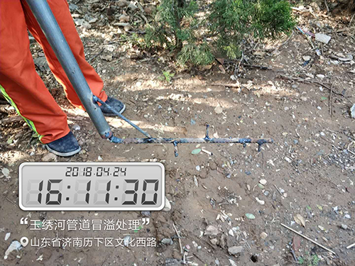 2018年4月24日濟(jì)南市政公用資產(chǎn)管理運(yùn)營(yíng)有限公司接到濟(jì)南市排水管理服務(wù)中心通知,在玉繡河下游發(fā)現(xiàn)一處檢查井冒溢,污水冒溢至玉繡河內(nèi)直接造成河道污染,接到通知后,公司立即安排應(yīng)急搶險(xiǎn)小組前往現(xiàn)場(chǎng),經(jīng)過(guò)現(xiàn)場(chǎng)排查該管段位于玉繡河河床內(nèi),不屬于我公司管轄范圍,按照市城鄉(xiāng)水務(wù)局“2018清網(wǎng)行動(dòng)”精神指示,本著有險(xiǎn)情先搶險(xiǎn)的原則,公司對(duì)該冒溢點(diǎn)立即進(jìn)行搶修,保證管網(wǎng)正常運(yùn)行。
