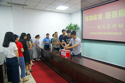 為全面踐行習(xí)近平新時代中國特色社會主義思想,深入貫徹落實習(xí)近平總書記“精準扶貧、精準脫貧”要求,弘揚中華民族扶貧濟困的傳統(tǒng)美德,鼓勵干部職工積極投身慈善事業(yè),根據(jù)集團《關(guān)于開展2018年“精準扶貧慈善捐款”活動實施方案》的要求,6月15日下午,濟南金衢公路勘察設(shè)計研究有限公司組織全體黨員干部群眾在第一會議室開展“精準扶貧慈善捐款”活動。