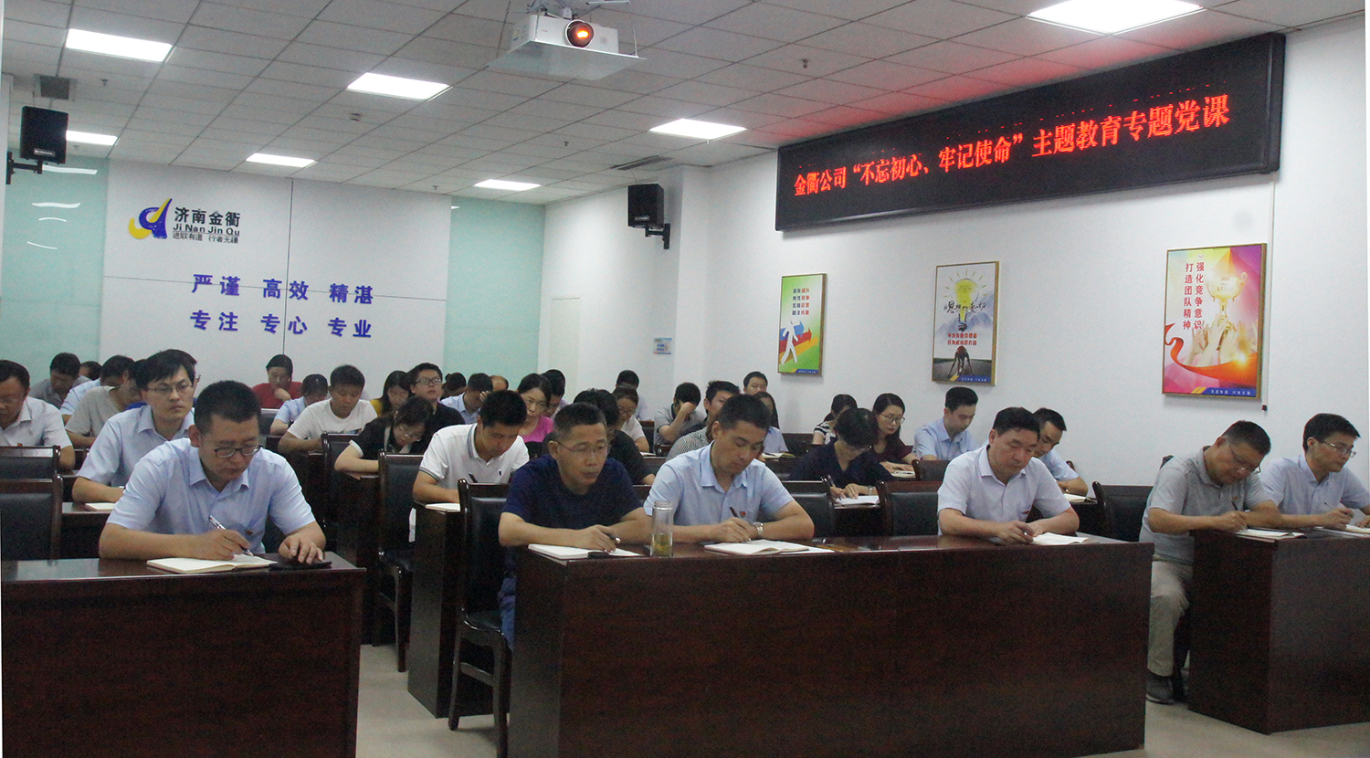 為深入推進(jìn)“不忘初心 牢記使命”主題教育,不斷加強(qiáng)黨員干部教育管理,8月9日,濟(jì)南金衢公司黨支部開展主題教育專題黨課活動(dòng),全體黨員、中層以上管理干部、入黨積極分子。公司黨總支書記張建以“新常態(tài)下如何立足崗位以實(shí)踐行動(dòng)詮釋實(shí)干、擔(dān)當(dāng)”為題,為全體參加人員上了一堂內(nèi)涵豐富、意義深遠(yuǎn)的黨課。