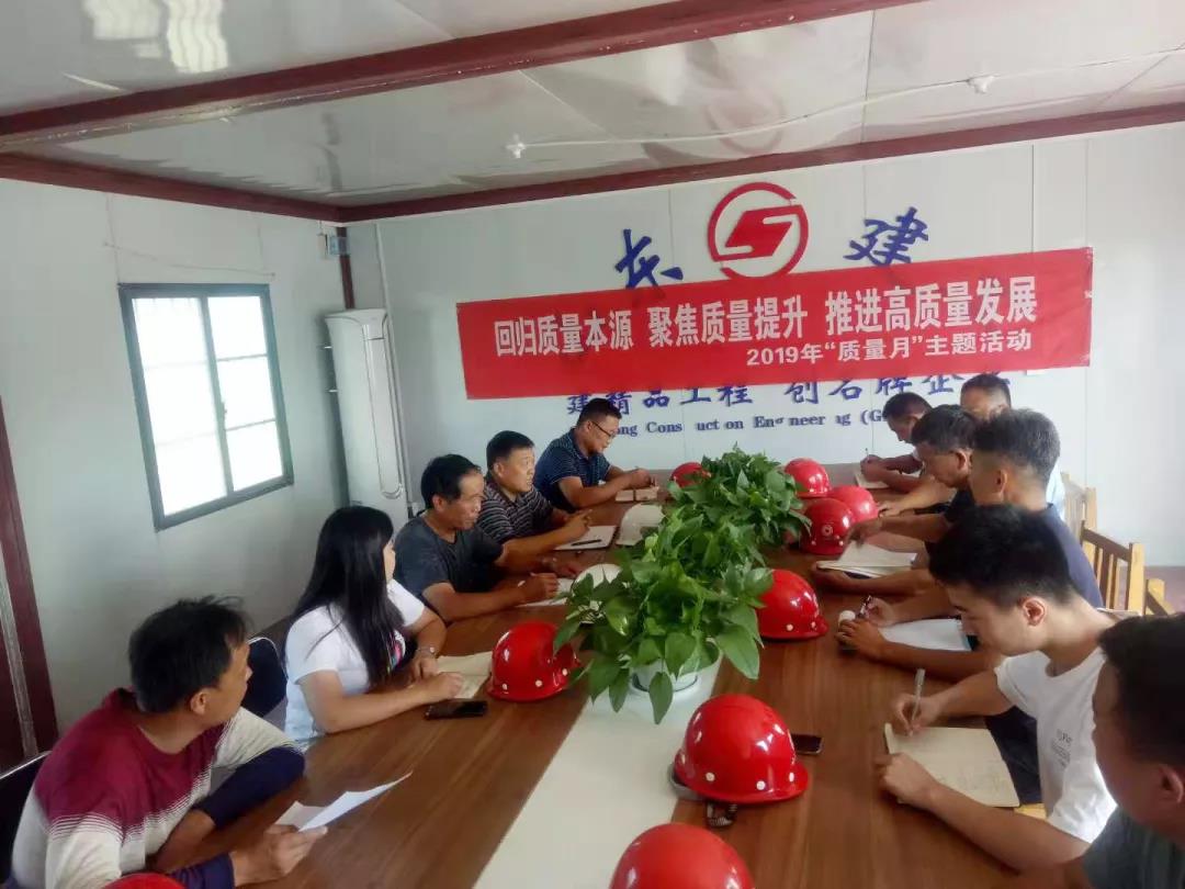 項目成立了全員參與的質(zhì)量月活動團隊,多措并舉,通過召開2019年質(zhì)量月活動部署動員大會,在項目施工現(xiàn)場張貼橫幅,組織質(zhì)量月簽名活動,邀請質(zhì)檢單位前來督查,現(xiàn)場問題排查、細化質(zhì)量標準等形式,將工程質(zhì)量缺陷消除在萌芽之中,不僅在施工現(xiàn)場努力營造良好的“強化質(zhì)量管理意識”的氛圍,也提高了施工人員質(zhì)量管理意識的主觀能動性。