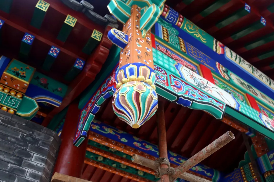 老濟(jì)南街項(xiàng)目中的建筑物彩繪為清代的官式彩繪,集中裝飾于占地面積最大、院落層次最復(fù)雜的“親王府”區(qū)域,彩繪具有形象生動(dòng)、內(nèi)容豐富的特點(diǎn),兼具可觀性與實(shí)用性,不僅延長建筑物的壽命還可以狀物抒情。此次“親王府”的建筑彩繪工作,由省內(nèi)資質(zhì)高、經(jīng)驗(yàn)豐富的曲阜市園林古建筑工程有限公司具體負(fù)責(zé),本著嚴(yán)謹(jǐn)負(fù)責(zé)的工作態(tài)度,遵循建筑清代背景元素,按照建筑物的格局與不同等級(jí)制度,組織繪畫經(jīng)驗(yàn)豐富的工匠制作。