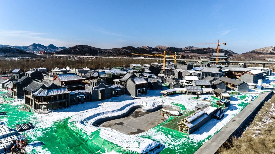 正在建設(shè)沖刺中的老濟南街,兼具明清與民國風(fēng)情的各色建筑韻味初顯,親王府、城隍廟、城門樓、書院、醫(yī)院、警察局等各類建筑一目了然,園區(qū)氛圍日益濃厚起來,不久的將來,這些場景都將會出現(xiàn)在影視作品中?,F(xiàn)場施工負責(zé)人表示,現(xiàn)場正在開足馬力搶工收尾,目前園區(qū)內(nèi)共有500余名工人在不同區(qū)域,進行各個單體圍墻施工、管道及地面鋪裝、城墻砌筑與熱力等工作,確保4月15日項目主體工程竣工,達到可拍攝條件。
