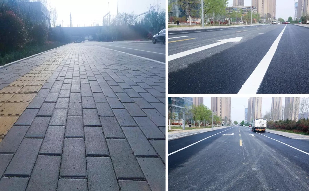 在各參建單位的配合下,先后完成工程施工范圍內(nèi)的地下管線及道路結(jié)構(gòu)層施工。并于4月5日完成瀝青面層攤鋪,4月7日完成人行道花磚鋪設(shè)。