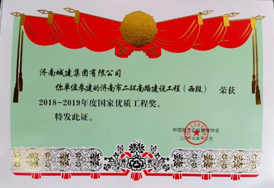 近日,中國施工企業(yè)管理協(xié)會(huì)在國家會(huì)議中心召開“2019年國家優(yōu)質(zhì)工程獎(jiǎng)總結(jié)表彰大會(huì)”,來自工程建設(shè)領(lǐng)域的各關(guān)聯(lián)協(xié)會(huì)及建設(shè)、勘察、設(shè)計(jì)、施工、監(jiān)理等700余家單位的1500名代表參加了會(huì)議。由濟(jì)南城市建設(shè)集團(tuán)所屬濟(jì)南黃河路橋建設(shè)集團(tuán)有限公司、濟(jì)南城建集團(tuán)有限公司分標(biāo)段承建的濟(jì)南市二環(huán)南路建設(shè)工程(西段)榮獲“2018-2019年度國家優(yōu)質(zhì)工程獎(jiǎng)”。