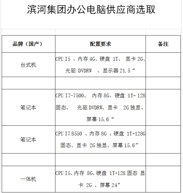 現對集團辦公電腦采購選取供應商進行詢價,有關事項通知如下,歡迎各單位參加報價。