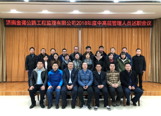 2019年1月12日下午,濟(jì)南金諾公路工程監(jiān)理有限公司在東部代建辦會(huì)議室召開2018年度中高層管理人員述職會(huì)議。公司中層及以上管理人員、各項(xiàng)目負(fù)責(zé)人和10位公司職工代表參加了本次述職會(huì)議。