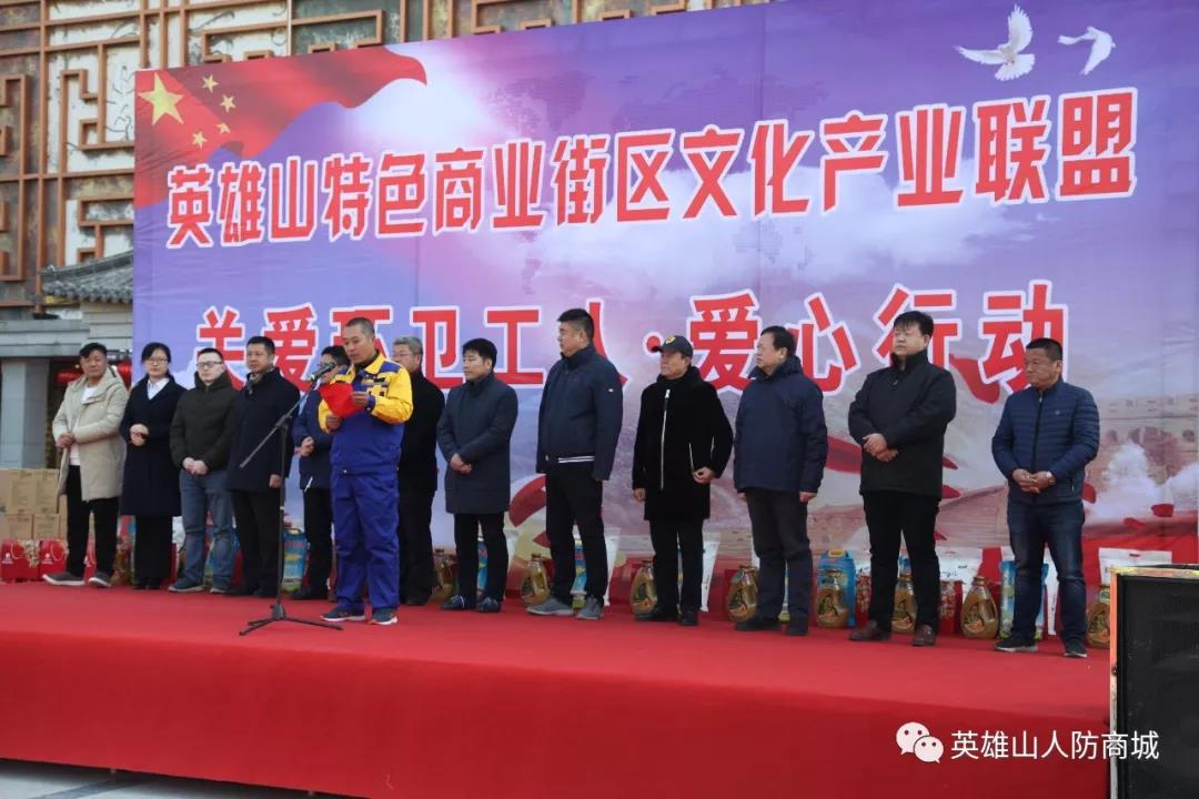 2019年2月1日,農(nóng)歷臘月二十七,濟南市英雄山人防工程管理有限責(zé)任公司作為英雄山特色商業(yè)街區(qū)文化產(chǎn)業(yè)聯(lián)盟成員單位,與多家聯(lián)盟單位聯(lián)合發(fā)起了中國濟南特色街區(qū)聯(lián)盟“關(guān)愛環(huán)衛(wèi)工人,愛心行動”主題公益活動,為服務(wù)于街區(qū)的環(huán)衛(wèi)工人們獻上節(jié)日的祝福,并送上了個人捐款與農(nóng)副產(chǎn)品。市中區(qū)副區(qū)長潘建軍、四里村街道辦事主任崔珉受邀參加了本次活動。