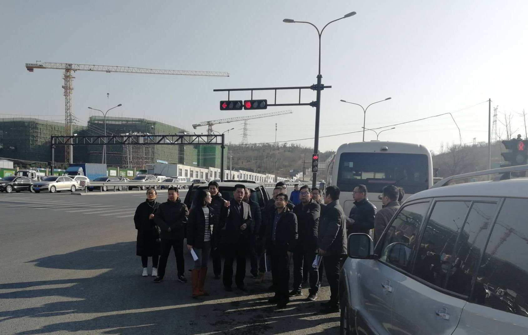 12月11日下午,與會專家及參會代表到工程現(xiàn)場進行實地勘察,了解道路現(xiàn)狀情況。