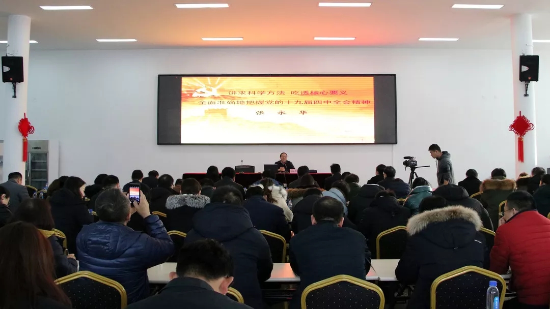 為更好地學(xué)習(xí)貫徹黨的十九屆四中全會(huì)精神,1月10日,集團(tuán)特邀市委、市紀(jì)委黨的十九大、十九屆四中全會(huì)精神、黨風(fēng)廉政建設(shè)宣講團(tuán)成員,市紀(jì)委監(jiān)委宣傳部副部長(zhǎng)、一級(jí)調(diào)研員張永華同志到集團(tuán)作黨的十九屆四中全會(huì)精神專(zhuān)題宣講。集團(tuán)領(lǐng)導(dǎo)班子成員及集團(tuán)機(jī)關(guān)支部全體黨員參加活動(dòng)。
