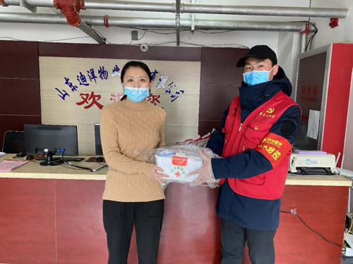 為了緩解清華園小區(qū)防控物資緊缺的壓力,公司黨支部向物業(yè)贈送了醫(yī)療箱。同時,隊員們在工作中耐心向老人們講解當(dāng)前疫情的嚴(yán)峻形勢及佩戴口罩的重要性,并手把手教老人們?nèi)绾握_佩戴口罩。有位老婆婆年事已高又買不到口罩,隊員便將自己的備用口罩拿出來為老婆婆帶上。