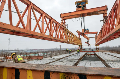 春節(jié)期間,張?zhí)嵊聸](méi)有休假,每天都要到工地一線,隨時(shí)掌握和了解施工進(jìn)展,協(xié)調(diào)解決施工過(guò)程中出現(xiàn)的各種問(wèn)題。在嚴(yán)格落實(shí)各項(xiàng)防疫措施的前提下,青年突擊隊(duì)加班加點(diǎn)干出一個(gè)春節(jié)“大禮包”:架設(shè)箱梁8跨32片,順利跨越青銀高速,實(shí)現(xiàn)關(guān)鍵環(huán)節(jié)的高效突破!
