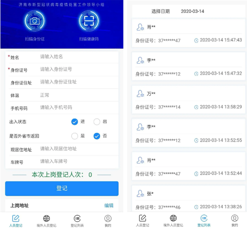 為切實保障濟(jì)陽區(qū)濟(jì)陽、濟(jì)北11個社區(qū)居民的生命安全和身體健康,上崗前,每名志愿者都在手機(jī)上安裝了“濟(jì)南易通行”APP,利用高科技軟件對社區(qū)居民每天的進(jìn)出狀況做好登記,既方便又快捷。