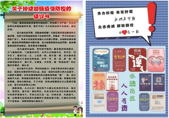 街道社區(qū)和集團印發(fā)了《新冠肺炎防控知識手冊》、《關(guān)于持續(xù)加強疫情防控的倡議書》等宣傳手冊、宣傳頁,對新型冠狀病毒感染的肺炎的相關(guān)知識進行了答疑解惑。目前我國疫情防控形勢持續(xù)好轉(zhuǎn),但疫情尚未解除,現(xiàn)階段境外輸入日益加劇,疫情防控不容麻痹松懈,提醒居民出入務(wù)必佩戴好口罩,做好個人防護,如有省外返濟或境外旅居史的要及時上報。