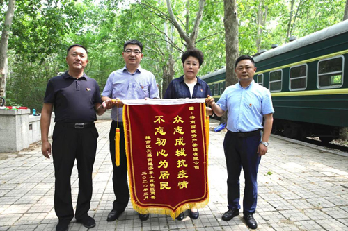 為感謝資產(chǎn)公司在疫情防控工作中對濟水上苑社區(qū)的大力幫助,社區(qū)書記葛榮劍向黨總支書記陳向勤贈送了錦旗。這面寫著“眾志成城抗疫情、不忘初心為居民”的錦旗,鞭策資產(chǎn)公司繼續(xù)踐行為民服務、守護國有資產(chǎn)的工作宗旨。