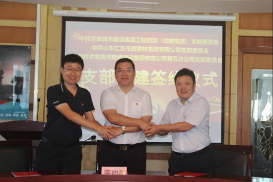 為進(jìn)一步增強(qiáng)基層黨建活力,充分發(fā)揮基層黨建的核心引領(lǐng)作用,促進(jìn)單位間的工作聯(lián)動(dòng)與業(yè)務(wù)融合,9月17日,集團(tuán)工程四部(動(dòng)能集團(tuán))黨支部、城建集團(tuán)園林公司黨支部、濟(jì)南黃河路橋五分公司黨支部結(jié)對(duì)共建簽約儀式。