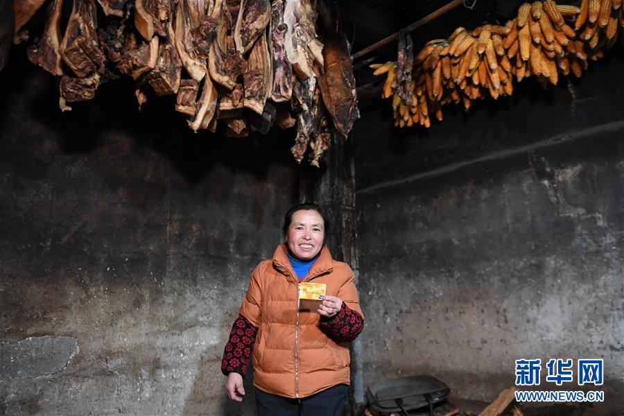 湖南龍山縣翻身村村民李紅云在展示自家的儲(chǔ)蓄卡(3月10日攝)。新華社記者薛宇舸攝