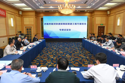 2019年4月,由城建集團組織的順河快速路南延隧道工程方案優(yōu)化專家論證會在濟南召開,會議邀請了中國工程院院士、國家最高科學技術獎獲得者錢七虎等多位國內(nèi)知名專家參會,經(jīng)專家論證決策,將工程原設計雙側(cè)壁導坑施工法優(yōu)化為單側(cè)壁導坑法,大大減少了隧道施工工序,節(jié)省出大量施工時間。同時,采用掘進機冷開挖為主、鉆爆開挖為輔的方式進行隧道開挖,掘進機開挖噪聲小、安全性高、社會危害性低、易于控制施工進展,彌補了鉆爆開挖振動大、對圍巖整體性破壞大的缺點。