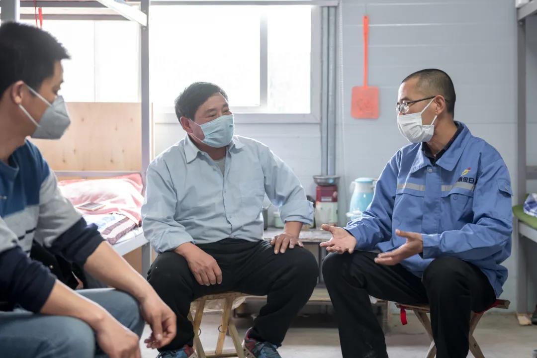 為了保障項目進度,按照計劃,春節(jié)期間有60多名工人留守在了綜合場站。面對突如其來的疫情,有些工人心理狀態(tài)還在“春節(jié)模式”,思想不夠重視,有些工人焦急萬分、歸鄉(xiāng)心切,做好工人的心理安撫和疏導工作成了防疫情、保生產(chǎn)的重中之重。“我邀請專業(yè)人員對大家進行了疫情知識宣講,引起他們思想上高度重視,同時注意對員工個人的談心溝通,讓他們務實收心,調(diào)整好工作狀態(tài),起到了不錯的效果”,作為在工地上摸爬滾打了十幾年的人,馬年先對工人的談心能做到要言不煩、一語中的,讓全員吃下了了一顆“定心丸”。