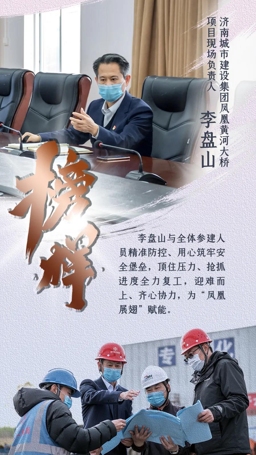 陽(yáng)春三月,兩岸新綠。鳳凰黃河大橋施工現(xiàn)場(chǎng),各施工區(qū)域熱火朝天、作業(yè)正忙。自項(xiàng)目全面復(fù)工以來(lái),1000多名工人日夜奮戰(zhàn)一線,在做好疫情防控工作基礎(chǔ)上,項(xiàng)目建設(shè)各項(xiàng)工作全速推進(jìn)。作為濟(jì)南城市建設(shè)集團(tuán)鳳凰黃河大橋項(xiàng)目現(xiàn)場(chǎng)負(fù)責(zé)人,李盤(pán)山與全體參建人員精準(zhǔn)防控、用心筑牢安全堡壘,頂住壓力、搶抓進(jìn)度全力復(fù)工,迎難而上、齊心協(xié)力,為“鳳凰展翅”賦能。
