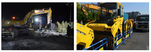 現(xiàn)場共有銑挖機、銑刨機、各型挖掘機、200t起重機、壓路機等119臺機械及備用機具。