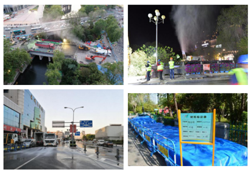現(xiàn)場通過抑塵車霧炮、灑水車、清掃車連續(xù)作業(yè),物料嚴密覆蓋,最大程度抑制揚塵。