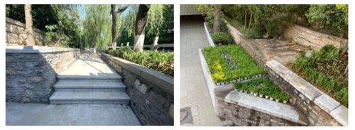 擋墻和步道充分利用原有石材,最大限度的進行原狀恢復。