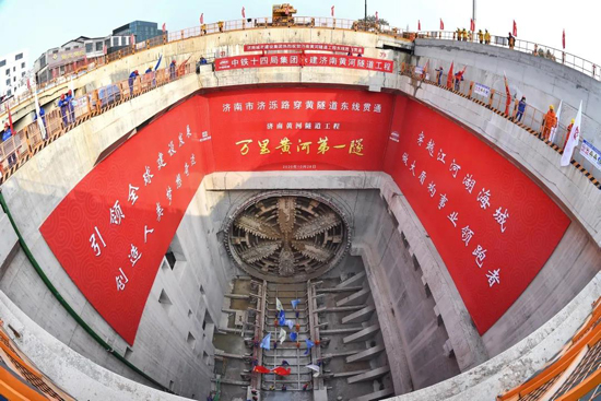 10月30日,隨著“泰山號”盾構機巨大刀盤破土而出,第1254環(huán)管片拼裝到位,“萬里黃河第一隧”濟南黃河隧道工程東線隧道率先貫通,標志著我國在建的最大直徑公軌合建盾構隧道取得重大進展,在世界上首次穿越地上“懸河”。該工程由濟南城市建設集團負責投資建設,中鐵十四局集團作為EPC總承包方,聯(lián)合中鐵第四勘察設計院集團有限公司、黃河勘測規(guī)劃設計有限公司組織施工、設計。