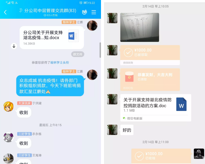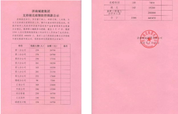 一方有難,八方支援。城建集團采取網(wǎng)絡(luò)捐款的形式有序組織活動,減少人員聚集,廣大黨員干部職工第一時間響應(yīng)活動號召,紛紛伸出援助之手,一筆筆“愛心捐款”迅速匯集到集團捐款專用賬戶,最終共有3390人參加捐款活動,捐款總額為440450元。全體干部職工紛紛表示:城建人從不怕打硬仗,抗擊疫情,責(zé)無旁貸,堅決打贏疫情防控阻擊戰(zhàn)。跟隨城建集團南征北戰(zhàn)的配屬隊伍,長期受優(yōu)秀企業(yè)文化的熏陶,早已融入我們這個“城建大家庭”,當(dāng)聞知集團開展愛心捐款活動后,主動請求參加捐款活動,緊跟集團積極履行社會責(zé)任。