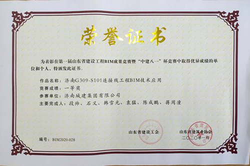 近日,山東省建筑業(yè)協(xié)會舉辦第一屆山東省建設工程BIM成果競賽暨“中建八一”杯BIM競賽公開答辯和競賽成果交流會,濟南城建集團有限公司攜1項作品“濟南G309-S101連接線工程BIM技術應用”參加。經(jīng)過技術人員匯報、答辯與專家評選,城建集團參賽作品最終榮獲一等獎。