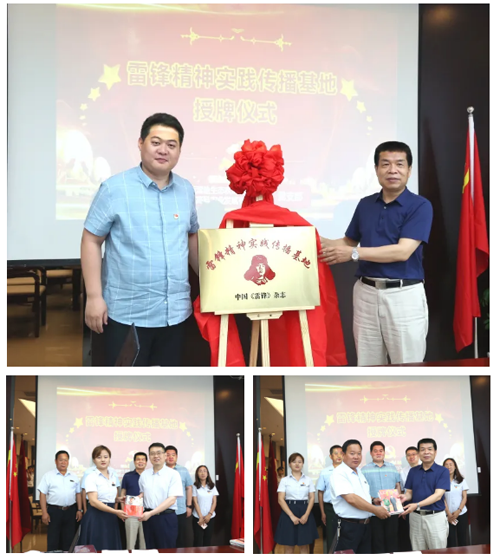 張振江與張慶忠一同為實(shí)踐基地揭牌,《雷鋒》雜志向濟(jì)西農(nóng)業(yè)捐贈了《學(xué)習(xí)雷鋒好榜樣》一書和部分《雷鋒》雜志。