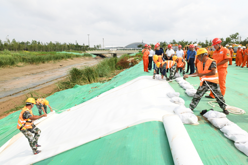 為進(jìn)一步檢驗(yàn)防汛應(yīng)急預(yù)案的科學(xué)性、有效性和可操作性,提高應(yīng)急反應(yīng)和防汛搶險(xiǎn)能力,6月24日上午,城建集團(tuán)在龍脊河項(xiàng)目施工現(xiàn)場舉行“濟(jì)南城建集團(tuán)2020年防汛應(yīng)急演練”。山東省應(yīng)急管理廳防汛抗旱處處長王秀中,濟(jì)南市應(yīng)急管理局副局長魏強(qiáng)、黨組成員李學(xué)軍、防汛抗旱處處長周凱、科長楊志斌,城建集團(tuán)總經(jīng)理牟曉巖,副總經(jīng)理呂守明、馬烽及分(子)公司經(jīng)理、安全分管經(jīng)理等150余人參加了演練活動。