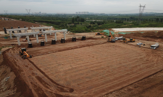 大東環(huán)二標段路基總挖方223.77萬方,總填方309.7萬方。為了確保項目建設(shè)的順利進行,項目部及早安排部署,從2018年底正式開展路基施工,從測量放樣、原地面清表、挖土方、填土方等各個環(huán)節(jié)都做到有條不紊、有序推進,積極利用有利天氣,挖掘機、推土機、壓路機等來回穿梭轟鳴,并進行積極協(xié)調(diào),確保各個工作面都有機械運轉(zhuǎn),大大提高了施工速度,同時進行細節(jié)把控,路基邊部采用液壓夯補強、搭接部位鋪設(shè)土工格柵、軟土地基采取摻灰處理等,推進進度同時保證了工程質(zhì)量。10月7日完成全部路基施工任務。