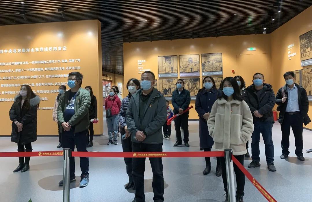 在中共山東省工作委員會舊址,黨員同志通過歷史圖片、文獻資料、實物陳列、聽取講解的方式,認真學習了在山東省委屢遭破壞、山東黨的工作長期失去統(tǒng)一領導的情況下,山東黨組織的創(chuàng)立和艱難的發(fā)展歷程。深刻領悟了以趙健民、劉仲瑩、鹿省三為代表的共產黨人,不屈不撓、前赴后繼、不怕犧牲、敢于擔當的革命精神。